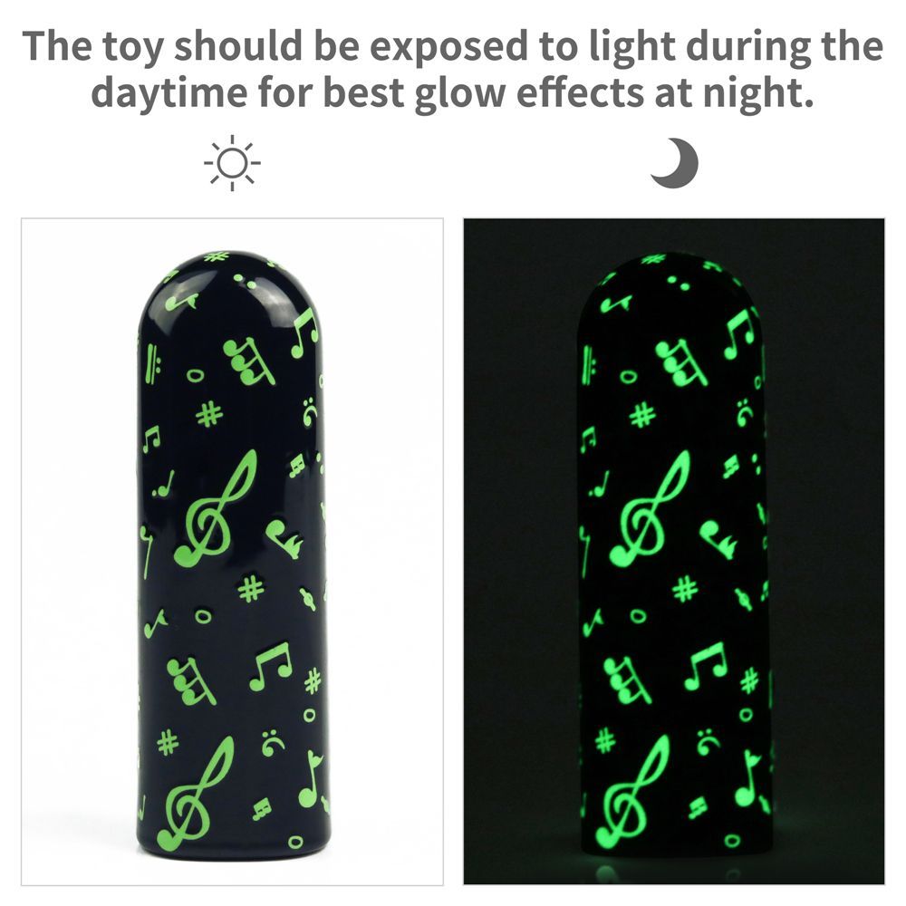 Dobíjací masážny prístroj svietiaci v tme je dimenzovaný tak, aby zostal po vašom boku, ale je dostatočne silný, aby poskytoval silný vibračný zážitok. Pripravte sa na osvetlenie vašich najtemnejších potešení!
