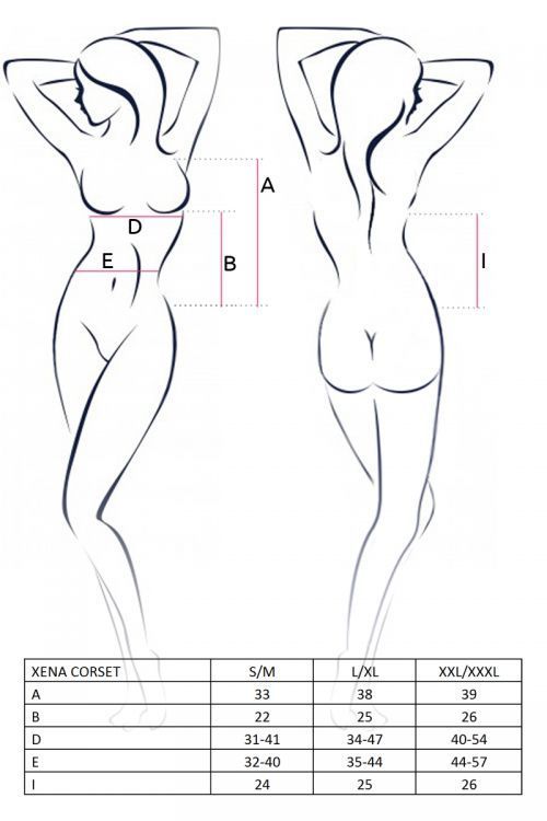 V podprsenkovej časti sú kostice a má nastaviteľné ramienka. Dolný okraj korzetu je lemovaný tylovým volánikom a sú k nemu pripevnené odopínateľné a nastaviteľné podväzkové pásky.