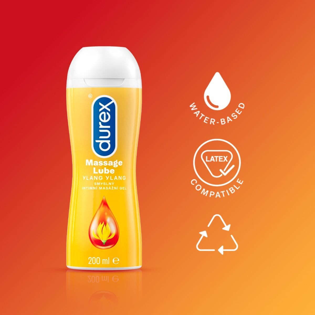 Masážny a lubrikačný gél 2v1 od značky Durex s vôňou ylang ylang
