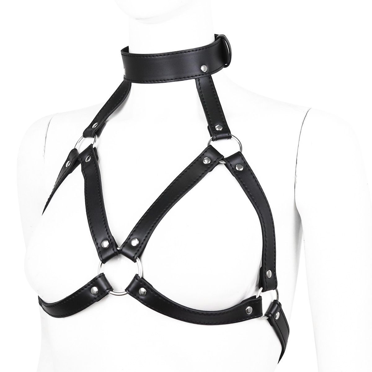 Podprsenka z ekologickej kože s kovovými cvočkami dodávajúcimi korenie. Podprsenka úžasne odhaľuje opuchnuté bradavky a umožňuje láskanie bradaviek bez toho, aby ste si museli dávať dole spodnú bielizeň.