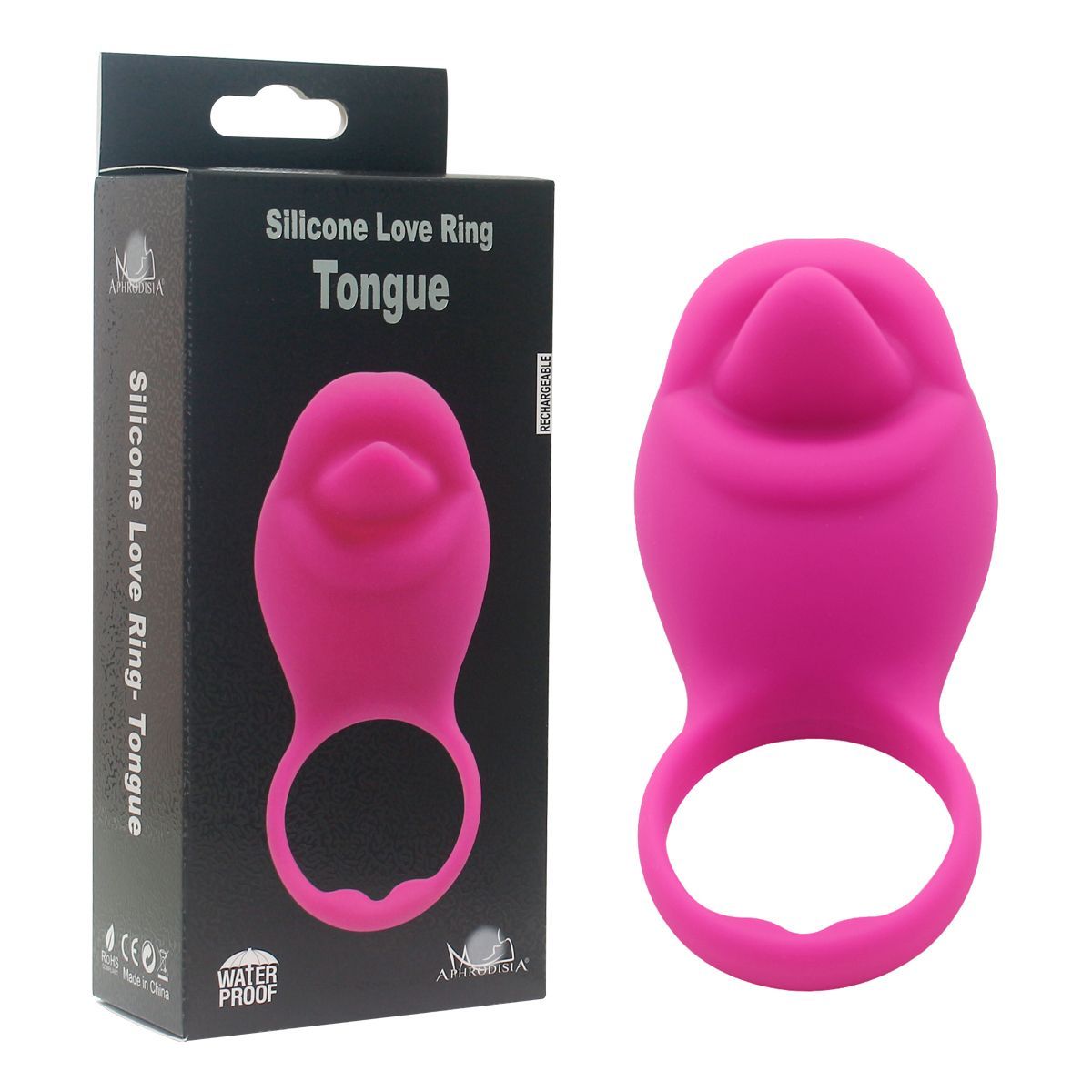 Dobíjací vibračný prsteň lásky Tongue Silicone Love Ring má nezbedný jazýček, ktorý funguje ako stimulátor klitorisu. Vibračný prvok je ukrytý v malej okrúhlej podložke. Zariadenie je veľmi funkčné a môže pracovať v 10 rôznych režimoch stimulácie. Celková dĺžka zariadenia je 10,2 cm, priemer nenatiahnutého krúžku je 3,5 cm. Materiálom je hypoalergénny lekársky silikón. Ako zdroj energie slúži vstavaná dobíjacia batéria.