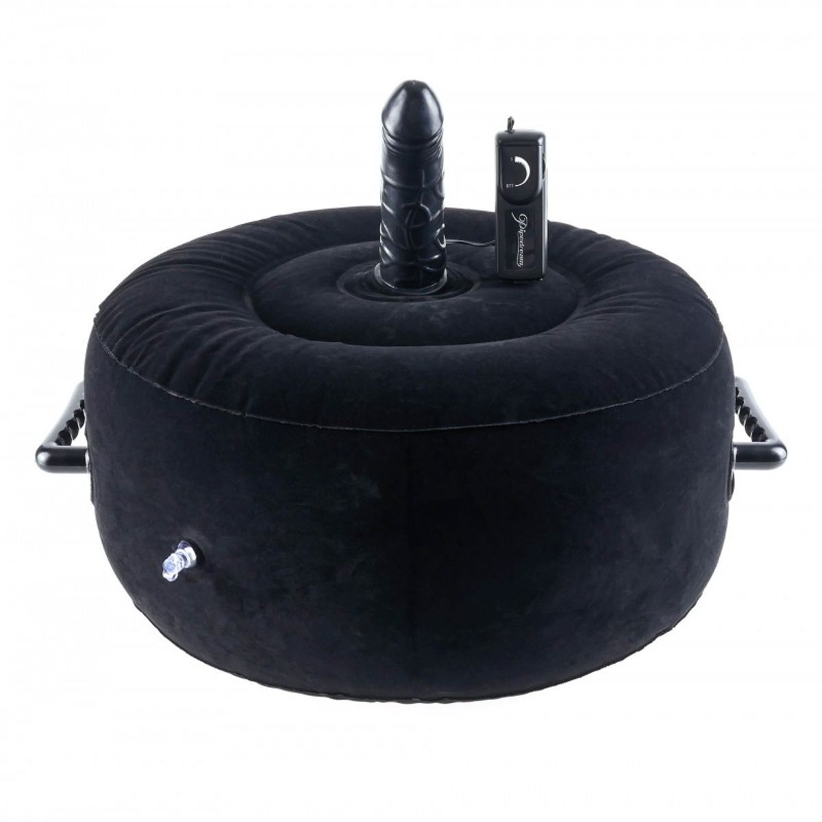 Pripravte sa na divokú vzrušujúcu jazdu svojho života. Kúpte si tento úžasný vibrátor v kresielku Pipedream FF Inflatable Hot Seat. Toto okrúhle kresielko je nafukovacie, skladné a rýchlo ho nafúknete pomocou špuntu s ventilom, preto bude kedykoľvek pripravené vás potešiť. Kvalitný PVC materiál potiahnutý jemným zamatom unesie až 130 kilogramov, takže na ňom môže vyvádzať takmer každý. Je mäkké a vďaka dvom madlám na boku je stavané aj na dlhodobé hrátky. Uprostred kresielka je vztýčený fenomenálny pevný čierny vibrátor v tvare penisu s odhaleným žaluďom a stimulačným žilkovaním, ktorý má za úlohu doviesť vás k vytúženému vrcholu. Rýchlosť a silu jeho vibrácie si sama pohodlne ovládate káblovým diaľkovým ovládačom z odolného ABS plastu, do ktorého prídu dve AA batérie. Súčasťou balenia je aj maska na oči, ktorá podporí vašu erotickú fantáziu a opravná sada s lepidlom pre prípad nehody. Nasaďte si masku, predstavte si vášho obľúbeného herca alebo športovca a nasadnite na vlnu neprekonateľné vášne. Využiť môžete lubrikant akejkoľvek bázy. Po každej akcii očistite vibrátor pomocou navlhčenej handričky a môžete použiť čistič erotických pomôcok. Prečo si vybrať vibrátor v kresielku Pipedream FF Inflatable Hot Seat: luxusné mäkké nafukovacie kresielko okrúhleho tvaru s držiakmi na bokoch kvalitný PVC materiál s hebkým zamatovým povrchom vibrátor na káblové diaľkové ovládanie z pevného PVC tvar odhaleného žaluďa sa stimulačným žilkovaním koliesko na ovládači upravuje rýchlosť a intenzitu vibrácie kresielko unesie až 130 kg maska na oči a opravná sada súčasťou balenia ľahká údržba Parametre: Farba: čierna materiál: PVC materiál Rozmery: priemer kresielka po nafúknutí cca 40 cm, dĺžka vibrátora 15 cm, priemer vibrátora 4,2 cm, maximálne zaťaženie 130 kg Vibrácie: áno Pohon: 2 x AA batérie Vodeodolnosť: nie Lubrikácia: lubrikanty na vodnej aj silikónovej báze