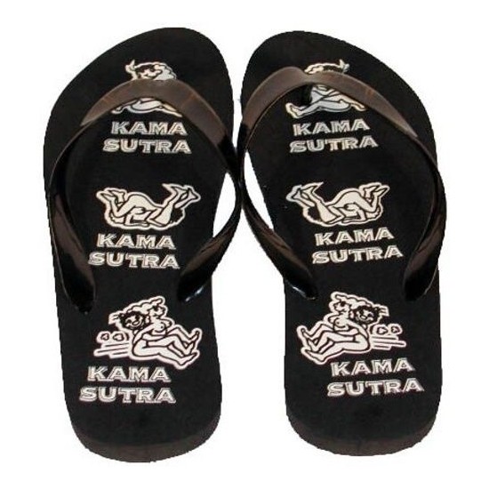 Žartovný predmet ŽABKY KAMASUTRA - Žabky čiernej farby s obrázkami z KAMASUTRY. Cuklíky sú vo veľ. 39
